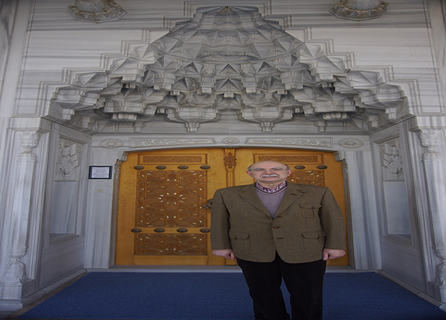 Bütün tezyinat Selim İrteş’e ait, minber külahı oyma ahşap, üzeri üç farklı ayarda altınla kaplandı, çok hoş duruyor.