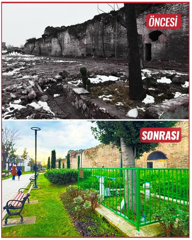Fatih Belediye Başkanı , Ergün Turan’ın talimatlarıyla gerçekleştirilen restorasyon çalışmaları kapsamında hazirede kapsamlı bir düzenleme yapılmış; mezar taşları özenle temizlenmiş, dış duvarlarda gerekli onarımlar tamamlanarak alanın korunmasına yönelik önemli bir adım atılmıştır.