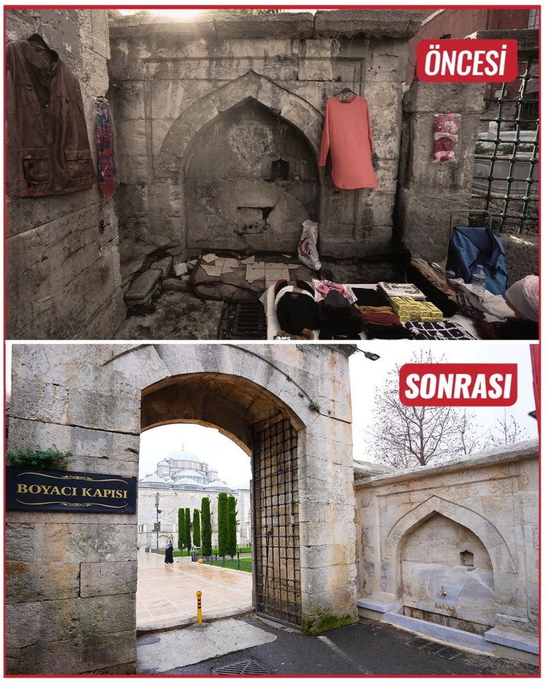 “Boyacı Kapısı Çeşmesi, aslına uygun şekilde restore ederek suyuna kavuşturduğumuz 125 çeşmemizden yalnızca biri. Fatih Külliyesi Boyacı Kapısı bitişiğinde yer alan ve zamanla yıpranan bu kıymetli mirasımızı, özgün dokusuna sadık kalarak yeniden ayağa kaldırdık. Kültürel mirasımıza sahip çıkmaya devam ediyoruz.”