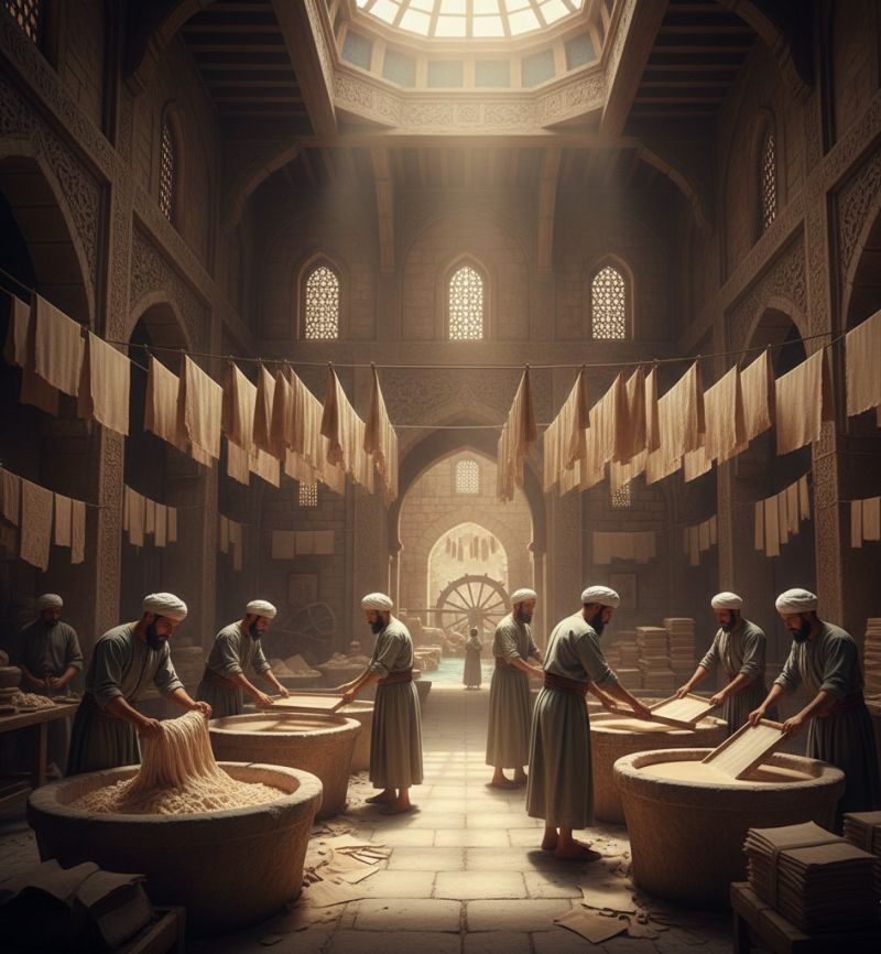 Kâğıt her ne kadar MS 105 yıllarında Çin’de ortaya çıkmış olsa da, bu mucizenin sanayileşmesi ve dünyaya yayılması İslam coğrafyasında gerçekleşti. Durant’ın aktardığına göre, İslam âlemindeki ilk kâğıt imâlâthanesi 794 yılında Bağdat’ta kuruldu. Bu, bilginin ucuzlaması ve kütüphanelerin devasa boyutlara ulaşması yolundaki ilk büyük adımdı.