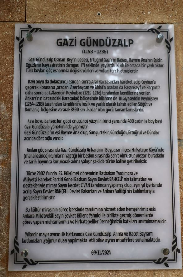 Osmanlıların Anadolu’daki göç yolculuğunda Ankara, kritik bir stratejik durak olarak öne çıkıyor. Tarihçiler, Kayı Boyu'nun bir süre Ankara civarındaki Karacadağ bölgesinde ikamet ettiği konusunda birleşiyor. Gündüz Alp'in Ankara'nın Beypazarı ilçesine bağlı Hırkatepe köyü yakınlarında (eski adıyla Kızıl Saray/Sekli) vefat ettiği ve buraya defnedildiği bilgisi, arşiv belgeleri ve tahrir defterleriyle de destekleniyor.