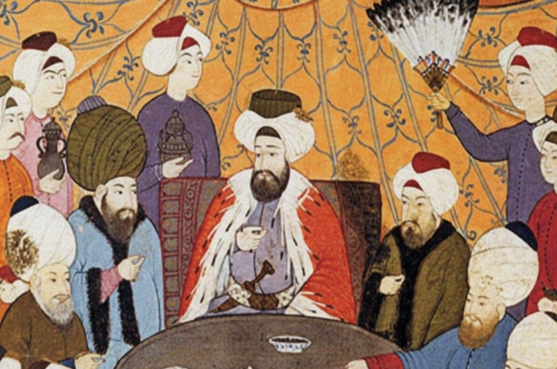 Fatih Sultan Mehmed de öyle ihtişamlı sofralarda oturmaz, yanında cariyeler falan da yoktur. 1469 tarihli bir belgeye göre sultan günde iki öğün yemek yer, birincisi ve en önemlisi sabah, ikincisi ise güneş batımındadır. Ne ilginçtir ki ikinci öğün, belli bir perhizin uygulandığı izlenimini verecek kadar sadedir: çorba, etli bir yemek, yoğurt ve genellikle çiğ yenen salata cinsinde otlardır. Daha ilginci ise ana yemek öyle günden güne değişmez. Padişah ayın ilk 15 günü her akşam şalgamlı ve yumurtalı kuzu ve geriye kalan 14 gün ise soğanlı tavuk kebabı yer. Sultan Mehmed'in en sevdiği yemek ise ıspanaktır.