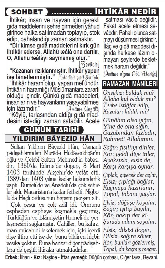 “Kazanan rızıklanmıştır. İhtikâr yapan ise lânetlenmiştir.” [Hadîs-i şerîf-İsti’ab]