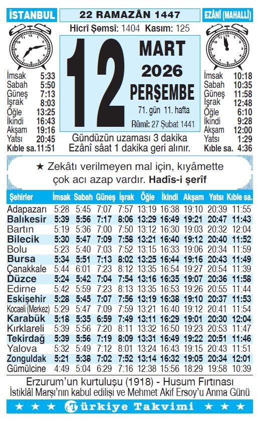 12 Mart 2007’de TBMM tarafından, İstiklâl Marşı’nın Kabul Edilişi ve Mehmed Akif Ersoy’u Anma Günü olarak kabul edildi.