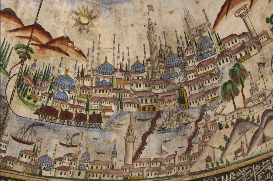 Payitahtın Silüeti: Galata ve Bayezid kuleleri arasındaki o eşsiz hat; Haliç, Galata köprüleri ve Sultanahmet’ten Ayasofya’ya uzanan camiler zinciri titizlikle işlenmiş. Hatta bir minareye asılan mahya, Ramazan ayının o kadim coşkusuyla eseri canlandırıyor.