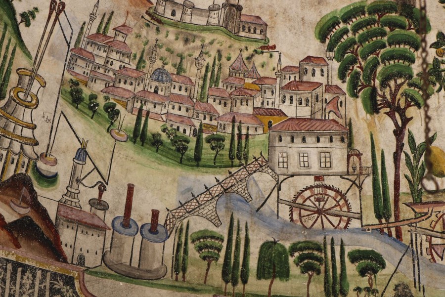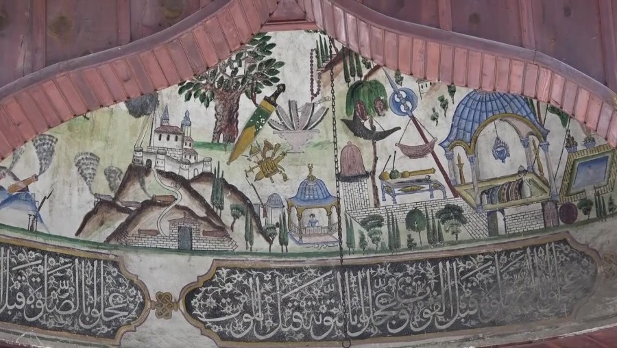Osmanlı resim sanatının geç dönem seçkin örneklerinden biri kabul edilen bu eser, ahşap şadırvanın külah bölümünde sessiz bir tanık gibi zamana direniyor.